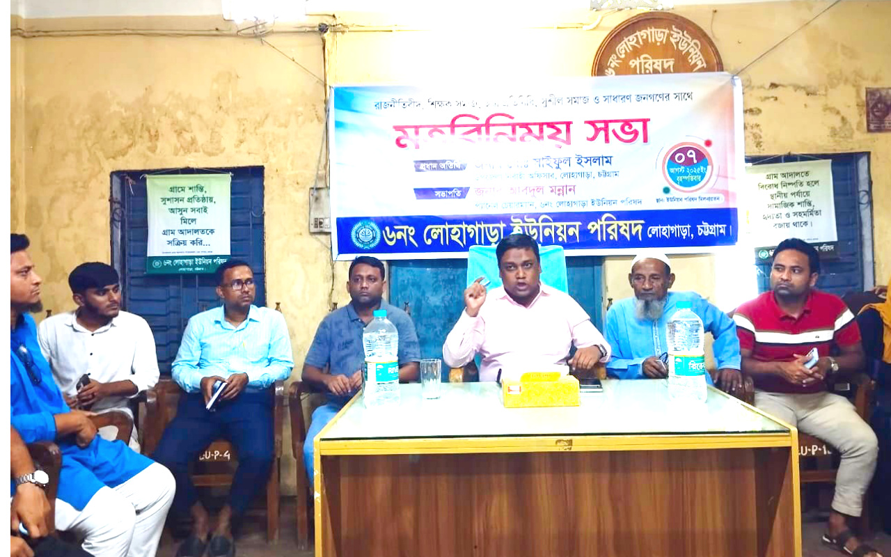 রায়হান সিকদারঃ লোহাগাড়া উপজেলার সদর ইউনিয়ন পরিষদে রাজনীতিবীদ, শিক্ষক সমাজ, সুশীল সমাজ, ছাত্র প্রতিনিধি এবং সাধারণ জনগণের সাথে একটি মতবিনিময়