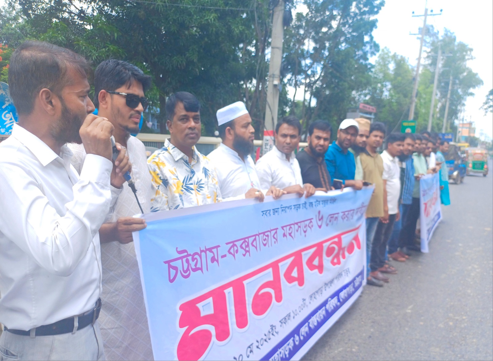 চট্টগ্রাম-কক্সবাজার মহাসড়ক ৬ লেনে উন্নীত করার দাবিতে মানববন্ধন