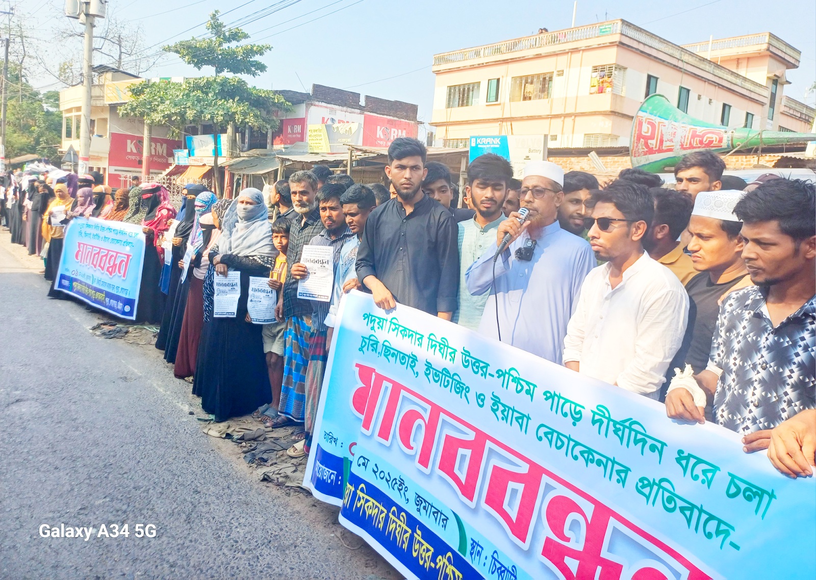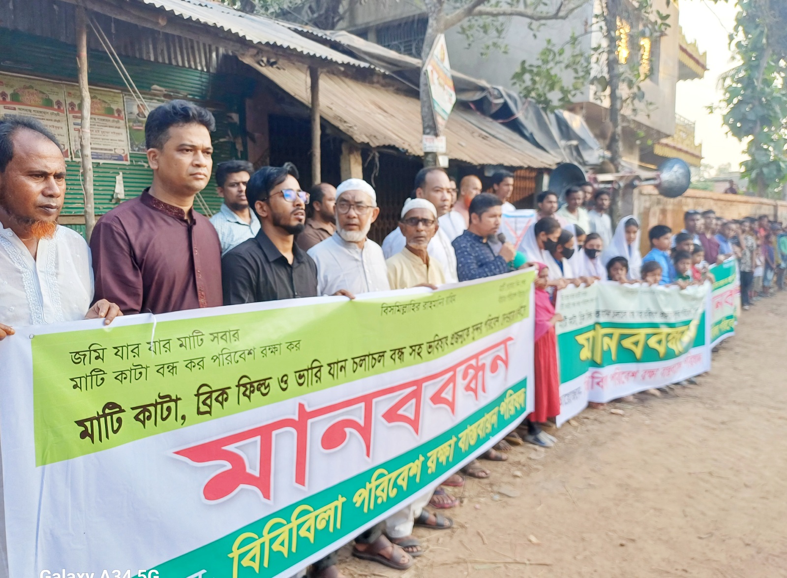 লোহাগাড়ায় মাটি কাটা, ব্রিক ফিল্ড ও ভারি যান চলাচল বন্ধের দাবীতে এলাকাবাসীর মানববন্ধন