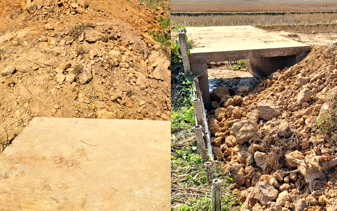 আধুনগরে মাটি দিয়ে কালভার্টের মুখ ভরাট!