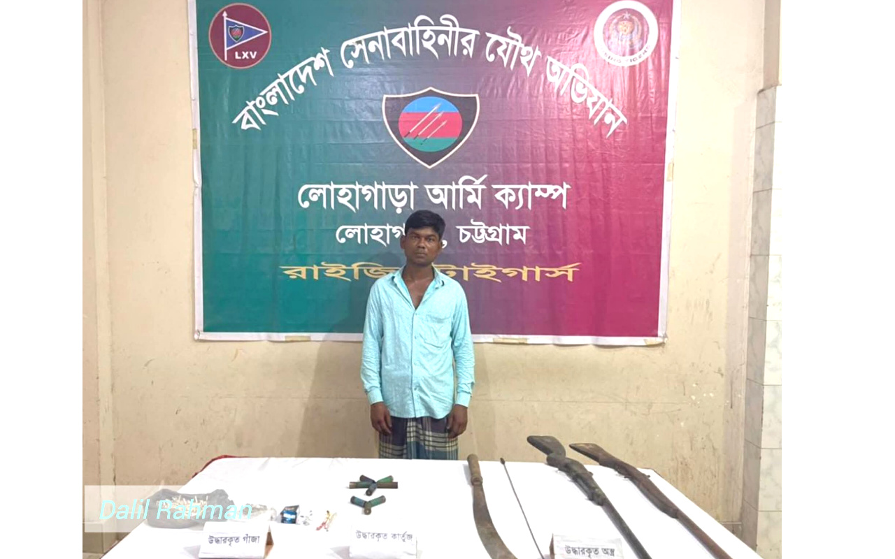 লোহাগাড়ায় যৌথ অভিযানে ২টি একনলা বন্দুকসহ একজন আটক