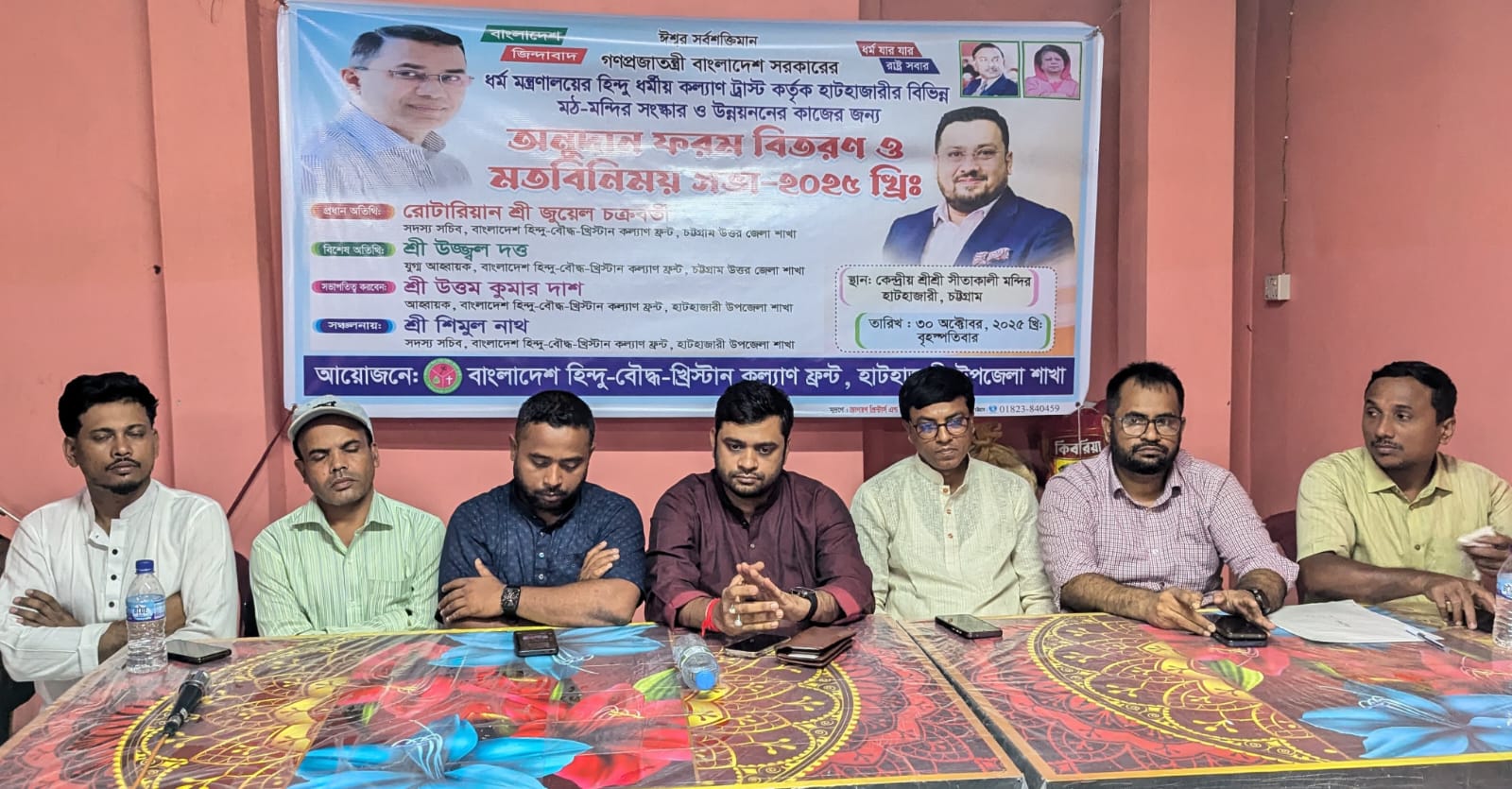 হাটহাজারীতে মঠ-মন্দির সংস্কার ও উন্নয়ন কাজের অনুদান ফরম বিতরণ ও মতবিনিময় সভা