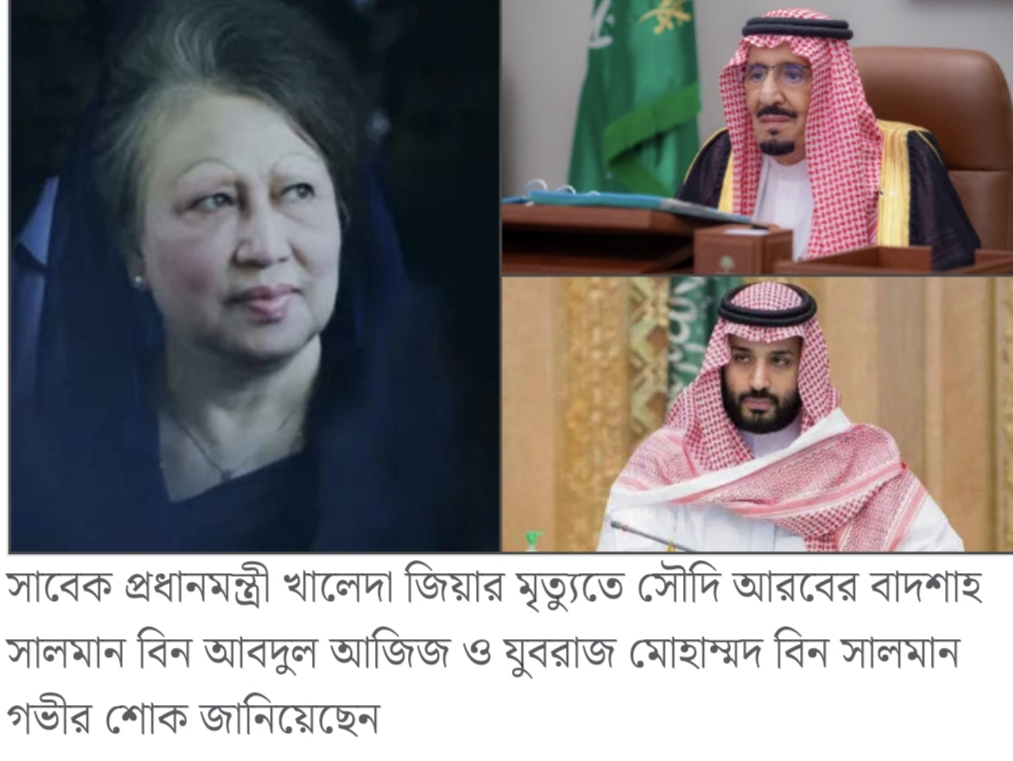 বিএনপির চেয়ারপারসন ও সাবেক প্রধানমন্ত্রী খালেদা জিয়ার মৃত্যুতে সৌদি আরবের বাদশাহ সালমান বিন আবদুল আজিজ আল সৌদ এবং যুবরাজ ও