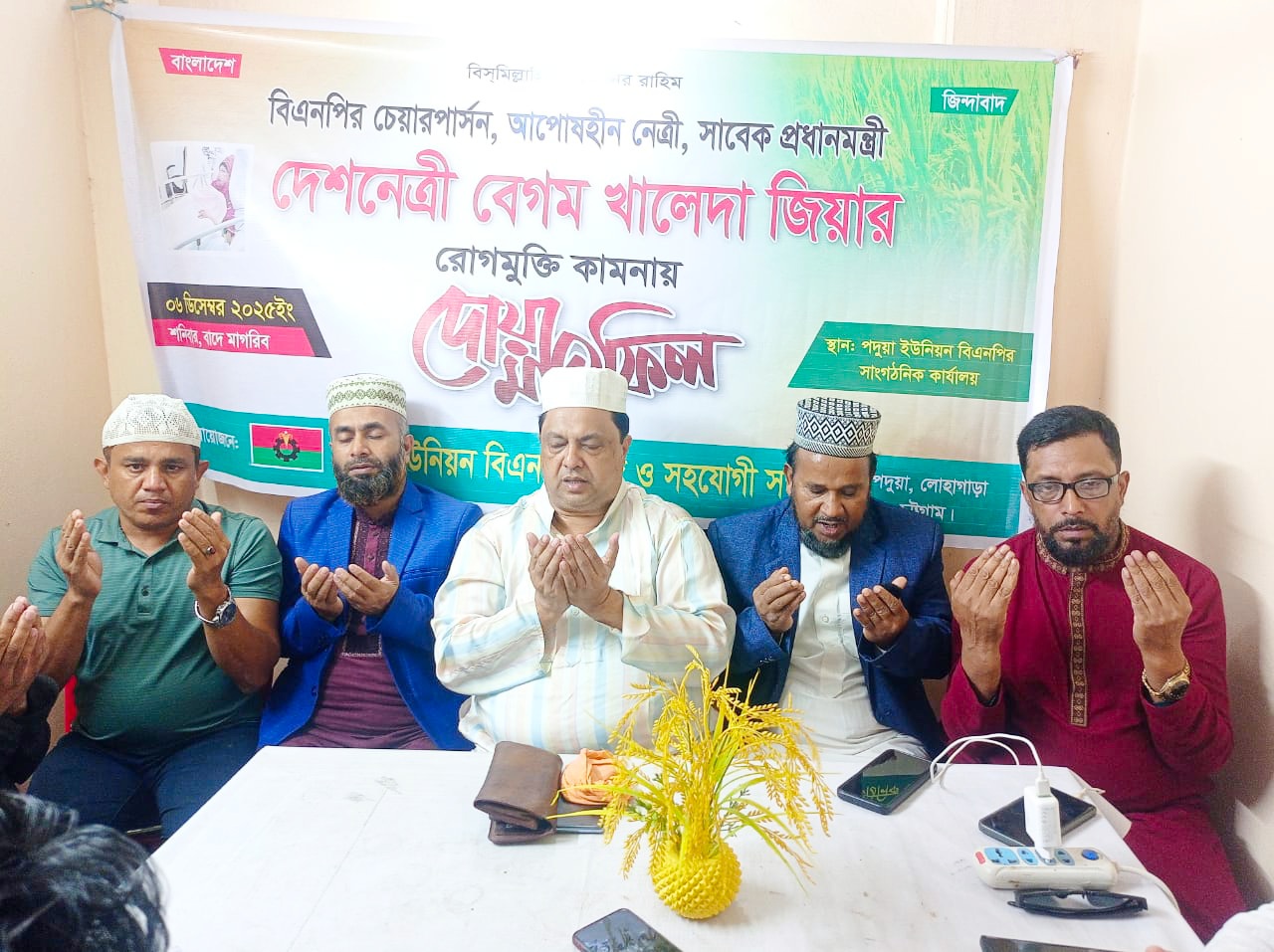 বেগম খালেদা জিয়ার রোগমুক্তি কামনায় পদুয়ায় বিএনপির দোআ মাহফিল
