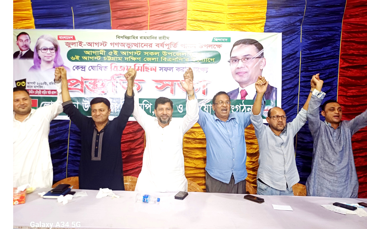 রায়হান সিকদারঃ জুলাই-আগস্ট গণঅভ্যুত্থানের বর্ষপুর্তি পালন উপলক্ষে ৫আগস্ট সকল উপজেলায় ও ৬আগস্ট চট্টগ্রাম দক্ষিণ জেলা বিএনপির উদ্যোগে কেন্দ্র ঘোষিত বিজয়